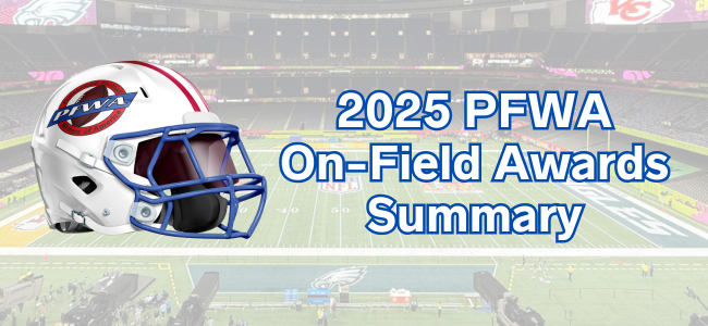 PFWA On-Field Awards McMillan PFWA Rookie and Offensive Rookie of the Year, Schwesinger Defensive Rookie of the Year; 2025 All-Rookie Team named